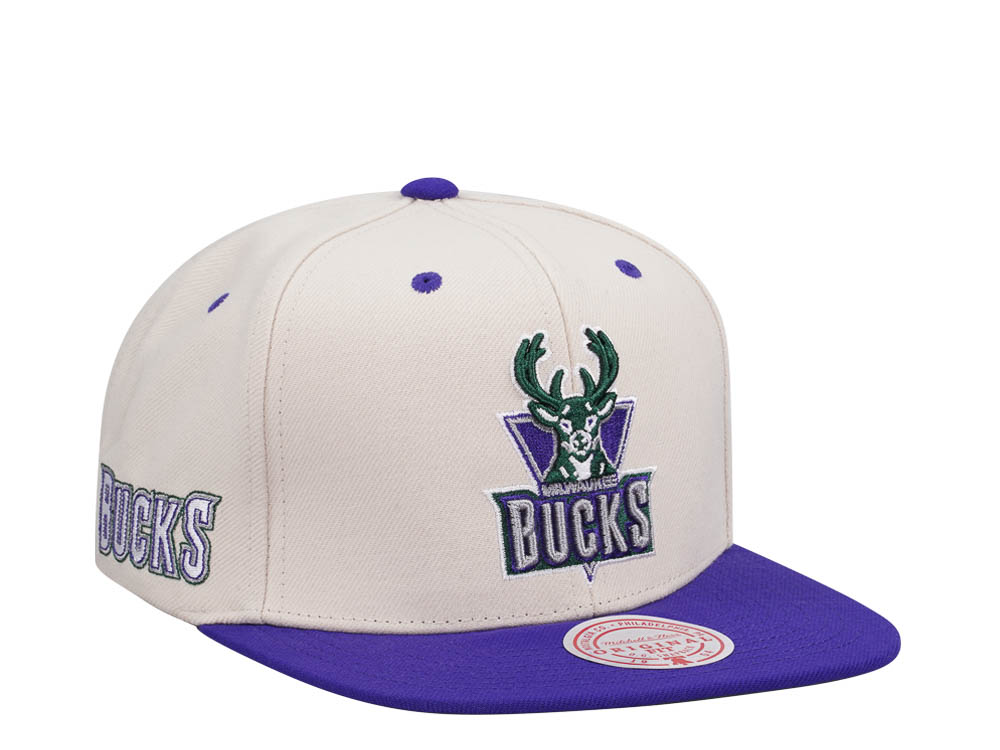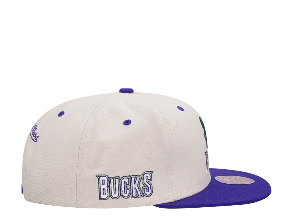 Mitchell & Ness Milwaukee Bucks Sail Off White Two Tone Snapback Cap
