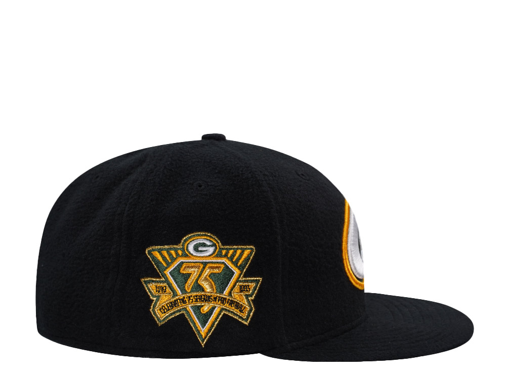 New Era Green Bay Packers 75th Anniversary Black Prime Fleece Edition 59Fifty Fitted Cap